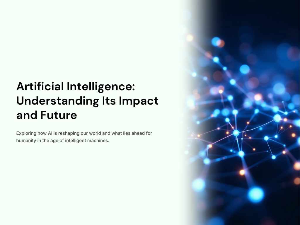 We have kept the PPT title “Artificial Intelligence: Understanding Its Impact and Future” and in this, we have explained what AI is and have talked about it in detail and also designed it. Here you can download this file without any signup. You will get this in a very simple and professional design.
